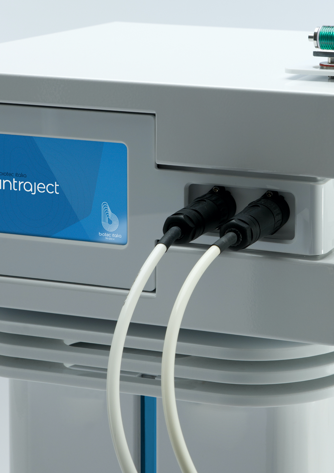 Intraject is a medical device of the latest conception in which three technologies of proven clinical effectiveness are combined: Radiofrequency, Electroporation, Plasma energy. Intraject is composed of three generators that operate with different frequencies and pulses, controlled by a very sophisticated software.